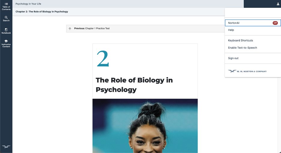 NortonAI is a new feature in select Norton Illumine ebooks for Fall 2026. NortonAI boosts student engagement and understanding with personalized, self-directed practice and reading support—grounded in your textbook’s trusted content.