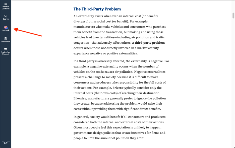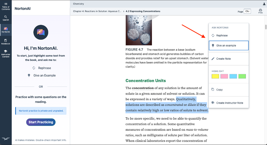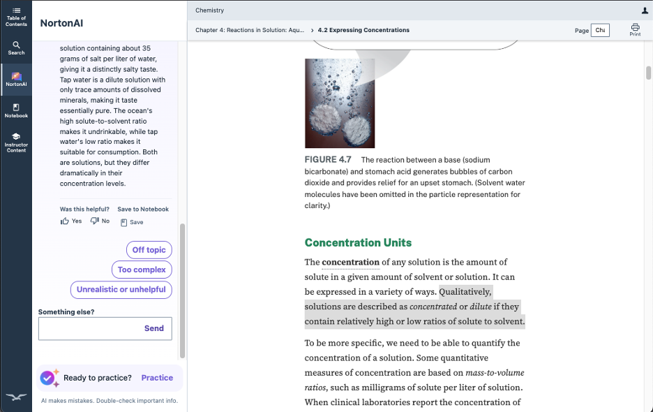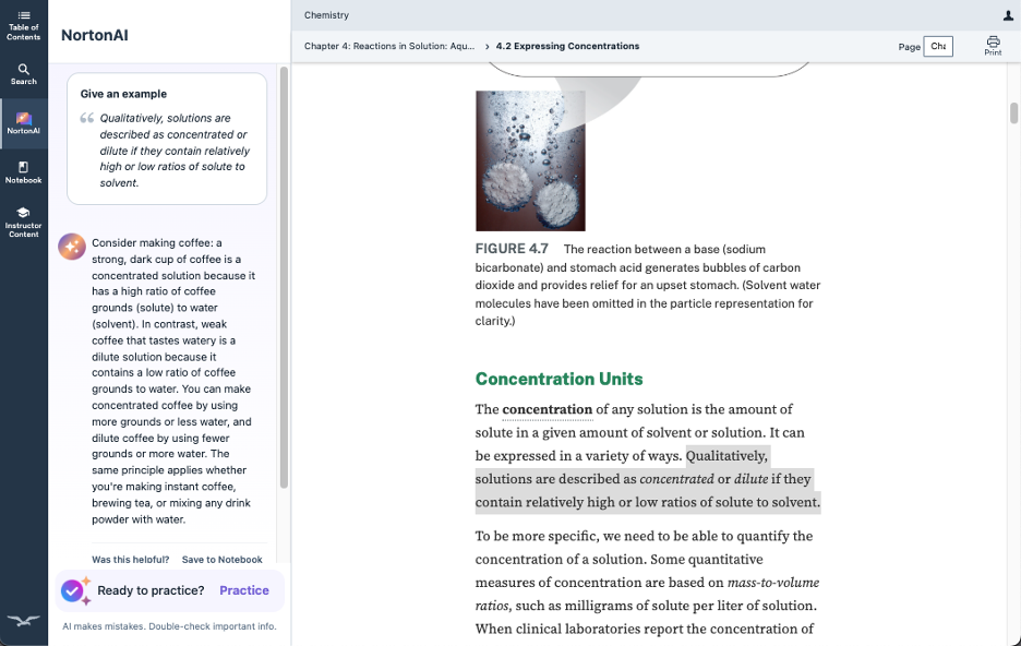 NortonAI is a new feature in select Norton Illumine ebooks that boosts student engagement and understanding with personalized, self-directed practice and reading support—grounded in your textbook’s trusted content.