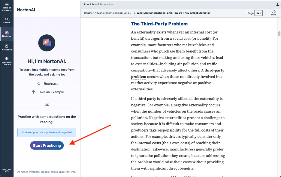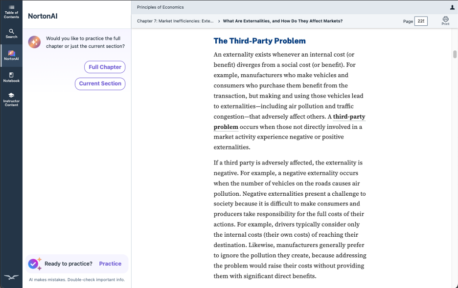 At any point in your reading, you can ask NortonAI to provide Practice Questions on the current section or on the full chapter.