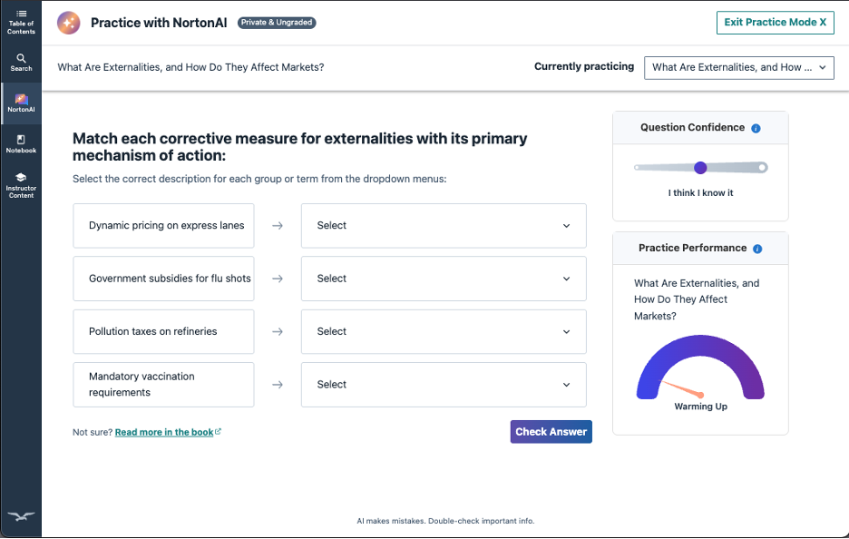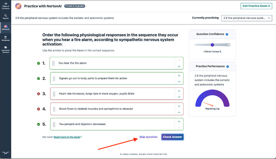 - Confidence Sliders that help NortonAI personalize the practice questions based on your confidence.