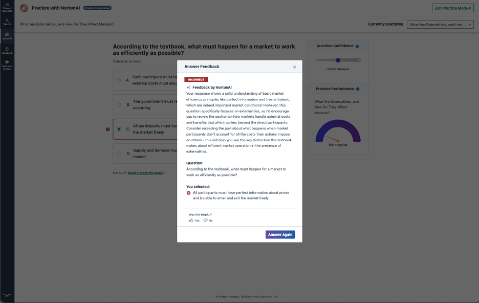 Since NortonAI is designed for practice and self-study, you can attempt to answer the question again or skip to another question.